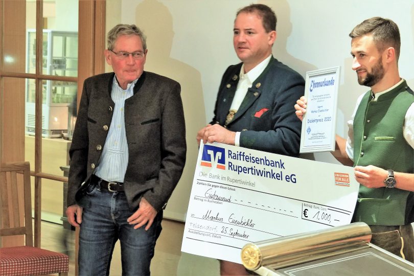 Kürzlich hat der Landschaftsverband Rupertiwinkel des FBSD, gemeinsam mit dem „Verein Bairische Sprache und Mundarten Chiemgau-Inn“ im Gasthaus Post in Neukirchen den Sprachpreis 2020 an den Skispringer Markus Eisenbichler aus Siegsdorf vergeben. Heinz Schober, der Vorsitzende des Landschaftsverbandes Rupertiwinkel hat den Preis überreicht; Gustl Lex aus Grabenstätt hielt die Laudatio.