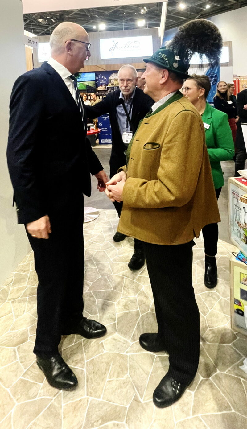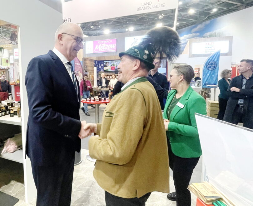 Traditionell ist am Messe-Montag immer der Brandenburg-Tag, der mit einem Rundgang des seit 2013 regierenden Brandenburgischen Ministerpräsidenten Dr. Dietmar Woidke begonnen hatte. Auch heuer trafen sich der Politiker und Anton Hötzelsperger von der Chiemsee-Alpenland-Region zu einem kurzen Dialog. Dabei versprach man sich auch fortan gegenseitig zu besuchen, da es sich beim Spreewald und beim Chiemsee um zwei gut zusammenpassende Premium-Destinationen handelt.