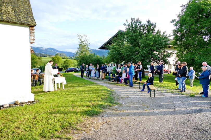 Mitglieder der Familie, die Nachbarschaft, Anna-Namensträgerinnen und weitere Gläubige fanden sich auch heuer bei einem Wettergemisch aus Abendsonne und dunkler Regenwolken ein, um zusammen mit Pfarrvikar Gottfried Grengel an die Heilige Anna, die Mutter der Gottesmutter Maria zu erinnern. Für die musikalische Gestaltung sorgten die “Preana Buam”, die Lesung übernahm Rosi Hell aus dem Nachbarort Leiten. Nach dem kirchlichen Teil luden Monika und Lorenz Stockinger noch zu einem gemütlichen Beisammensein in den Grieblingerhof ein.