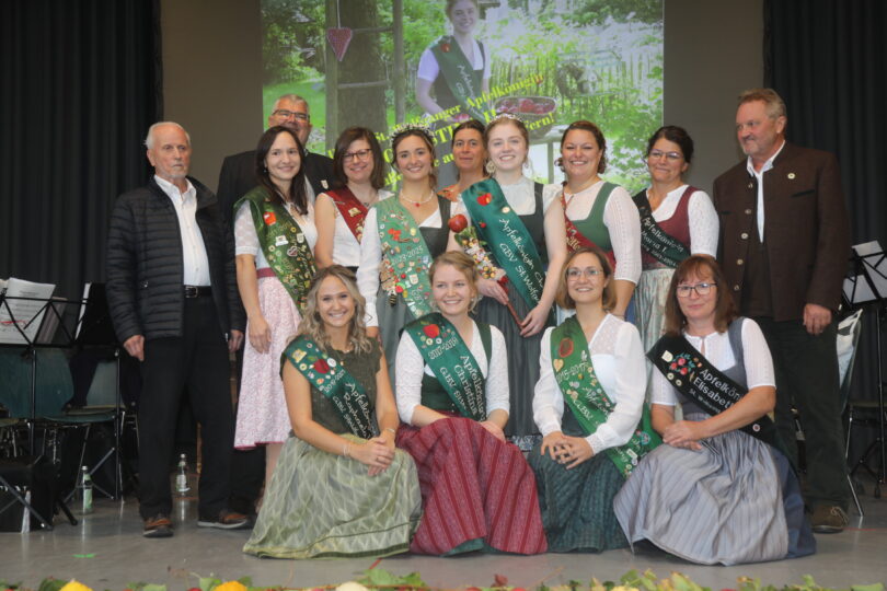 -5639 Zur Verabschiedung und zur Inthronisation der neuen Sankt Wolfganger Apfelkönigin waren insgesamt 15 Hoheiten (Produktköniginnen) aus ganz Bayern und aus Südtirol gekommen