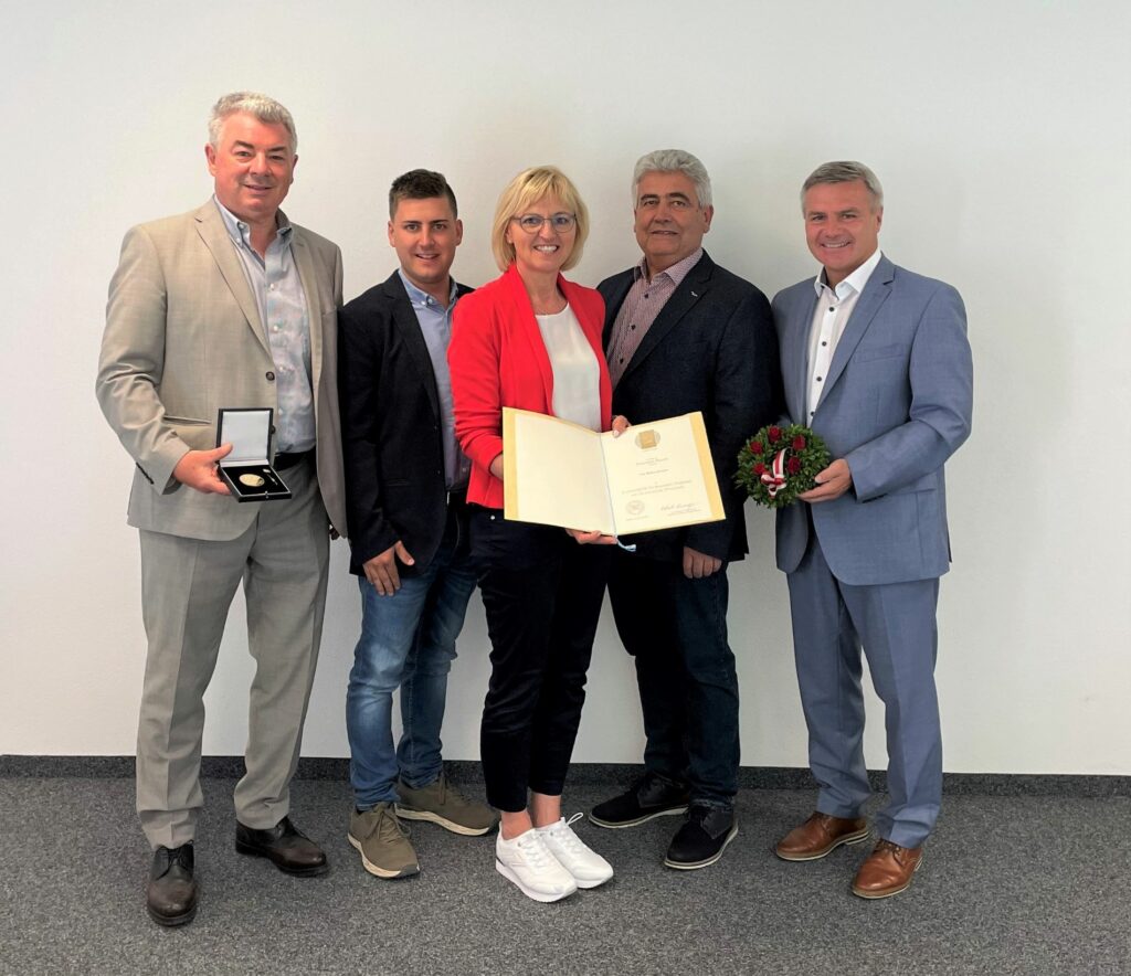 Barbara Ramsauer erhielt kürzlich die Bayerische Staatsmedaille in Gold für ihre Verdienste um die bayerische Wirtschaft. Landrat Peter Dreier und Veldens Bürgermeister Ludwig Greimel gratulierten der Unternehmerin aus dem Landkreis Landshut persönlich zu dieser Auszeichnung.