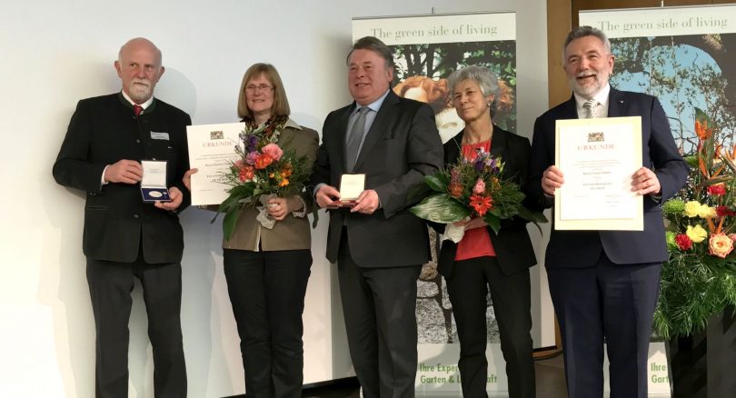 Für ihre herausragenden Verdienste um den Garten- und Landschaftsbau in Bayern hat Landwirtschaftsminister Helmut Brunner den langjährigen Präsidenten des Verbands für Garten-, Landschafts- und Sportplatzbau Bayern (VGL Bayern), Ulrich Schäfer, und seinen Vizepräsidenten Norbert Stöppel ausgezeichnet. Auf der Mitgliederversammlung in Nürnberg überreichte der Minister dem scheidenden Präsidenten Schäfer die Staatsmedaille in Gold und seinem ebenfalls aus dem Amt scheidenden Stellvertreter die Staatsmedaille in Silber. „Mit Ihrem großen Engagement haben Sie maßgeblich zur positiven Entwicklung des Garten-, Landschafts- und Sportplatzbaus in Bayern beigetragen“, sagte Brunner in seiner Laudatio. Darüber hinaus hätten sich beide besonders um das hohe Ausbildungsniveau dieser wichtigen Branche im Freistaat verdient gemacht.