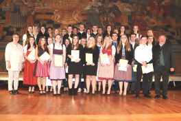 Die Staatspreisträgerinnen und Staatspreisträger schlossen ihre Ausbildung mit einem Notendurchschnitt von 1,5 und besser ab. Als Anerkennung erhielten sie die Staatspreisurkunde und einen Geldpreis von je 75 Euro, den die Regierung von Oberbayern und der Landkreis Rosenheim zur Verfügung stellten. Die Feierstunde im historischen Rathaussaal umrahmten die Blechbläser der Stadtkapelle Wasserburg.