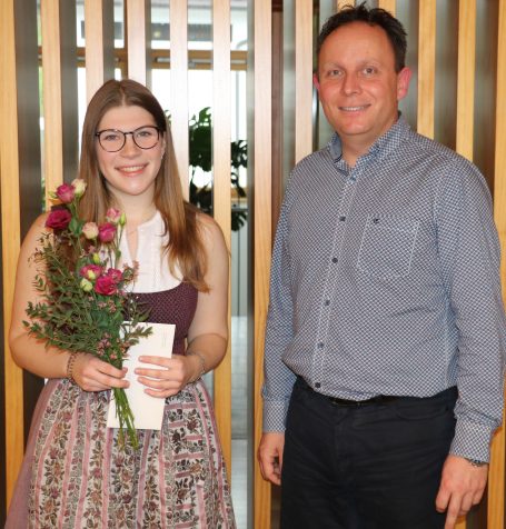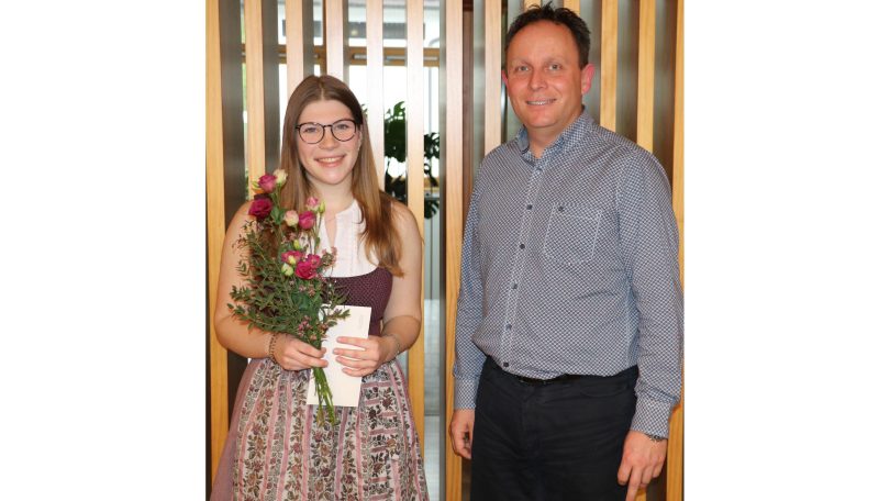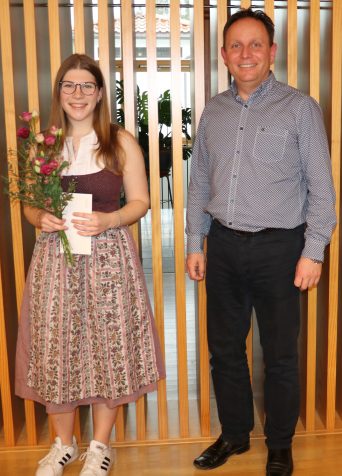 Bürgermeister Daniel Mair überreichte ihr die Glückwünsche und eine Anerkennung der Gemeinde Frasdorf für ihr hervorragendes Zeugnis.