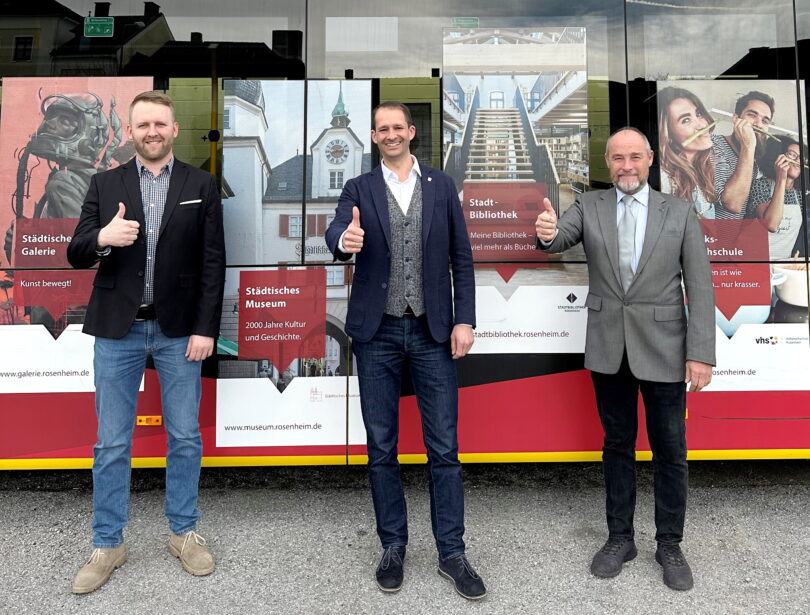 Bericht und Foto: Stadt Rosenheim – v.l.n.r.: Der künftige Geschäftsführer der Verkehrsgesellschaft Rosenheim Tobias Weiß, Oberbürgermeister Andreas März, der Geschäftsführer des Stadtverkehrs Ingmar Töppel