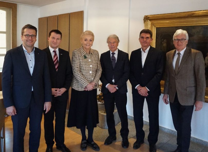 Bildunterschrift: V.l.n.r.: Torsten Schüssler, Lions Club Rosenheim; Frank Pauler, komro GmbH; Gabriele Bauer, Oberbürgermeisterin; Dr. Helmut Schmidt, Gertraud Stumbeck Stiftung, Michael Keneder, Stadtdirektor; Stefan Ludwig, GRWS