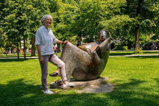 Bildunterschrift: Maria Wolfarth erklärt die Skulpturen im Salingarten