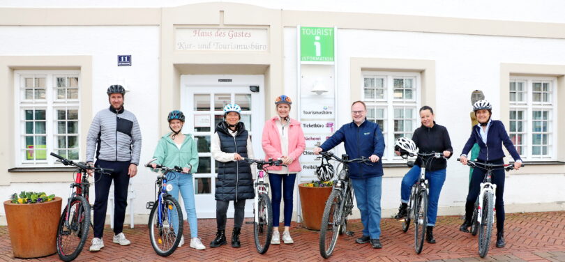 Bericht und Foto: Prien Marekting GmbH – Vorfreude in Prien – die Anmeldung zum „Stadtradeln 2023“ ist ab sofort möglich! (v.l.n.r.) Der Leiter des Tourismusbüros Florian Tatzel, die Mitarbeiterinnen der PriMa Leonie Muschalla, Janine Zindler und Magdalena Berka sowie der Erste Bürgermeister der Marktgemeinde Andreas Friedrich, die Mitarbeiterin der PriMa Ute Günther und die Geschäftsführerin der Prien Marketing GmbH Andrea Hübner sind bereits registriert.
