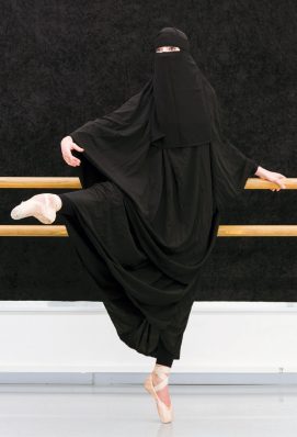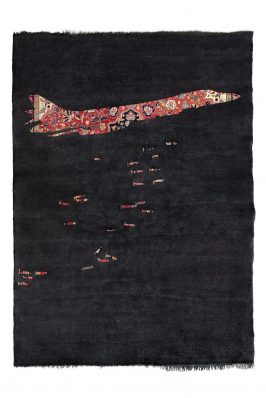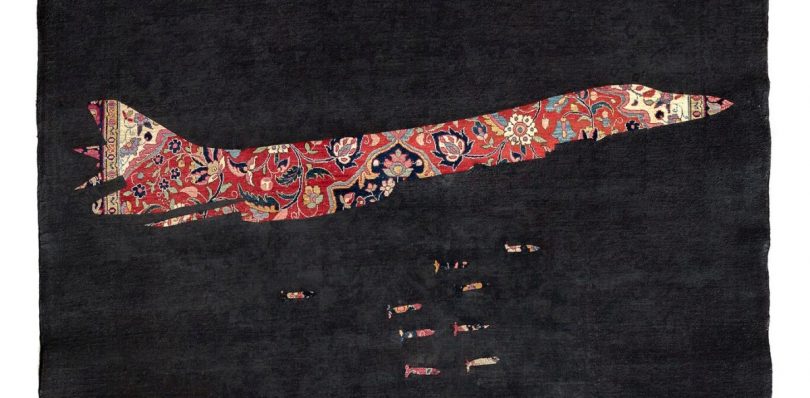 Verschleierte Balletttänzerinnen, Fliegerbomber statt Floralmuster auf dem Orientteppich oder barbusige Frauen mit Brusthaar – die Ausstellung „Broken Lines_ Adidal Abou-Chamat_Jutta Burkhardt_Rose Stach“, die ab dem 8. Dezember 2017 bis zum 21. Januar 2018 in der Städtischen Galerie Rosenheim zu sehen ist, verwirrt, schockiert, verunsichert und überrascht, denn nichts ist hier unmittelbar das, was es auf den ersten Blick scheint.