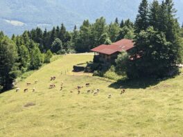 An der Talstation wurde Christoph´s Schuh repariert, wir können unsere Tour zur Hefteralm sogar gemeinsam fortsetzen, aber auf einem Umweg. Nach einer Rast auf der Fahrnpointalm wandern wir zuerst noch bergauf bis zum Staffnrundweg, dann auf diesem bis zur Abzweigung der Almstraße zur Moieralm und Hefteralm. Problemlos und aussichtsreich geht´s mit dem reparierten Schuh hinunter zu unserem Ziel, wo wir uns Weißbier, Brotzeit und Kaiserschmarrn schmecken lassen. Die beliebte, kinderfreundliche Alm mit Kühen, Pferden, Ziegen, Hasen und Hühnern ist wunderschön. Ein noch ganz junges Pony saust um die Mama im Kreis herum, nur der Kaiserschmarrn war nicht ganz nach meinem Geschmack.
