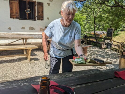 Auf dem Abstieg zum Strehtrumpf kommt uns eine richtige Völkerwanderung entgegen, denn heute wird noch aufg´spuit, ab 16 Uhr gibts “Oim Musi”.