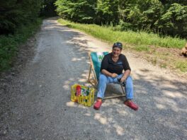 Was tun? Der Steig hinauf zur Staffnalm ist steil und rutschig und mit dem kaputten Bergstiefel nicht zu machen. Zurück zum Strehtrumpf ist für uns auch keine Option, aber da naht ein Auto – ein Mitarbeiter der Rachlhofchefin. Er bietet uns an, uns nach Marquartstein mitzunehmen. Aber was sollen wir in Marquartstein, unser Auto steht am Strehtrumpf. Ich schlage vor, dass meine beiden Begleiter mit dem Auto hinunter bis zur Talstation der Plattenbahn fahren und mit dieser hinauf auf die Staffnalm, wo wir uns wieder treffen, um dort einzukehren. Ich würde alleine zur Staffnalm hinaufsteigen und könnte dann von dort zurück zum Strehtrumpf marschieren und das Auto holen. Auch andere Almwanderer sind inzwischen da und ärgern sich, weil am Wanderparkplatz kein Hinweis auf die Sperrung angebracht war. Zwei Mountainbiker verstecken ihre Räder im Wald und setzen ihren Weg zu Fuss auf dem Pfad zur Staffnalm fort. Mein Vorschlag wird angenommen und ich folge den beiden, die aber bald außer Sicht sind., bin aber gleichzeitig an der Bergstation der Plattenbahn wie meine Begleiter.