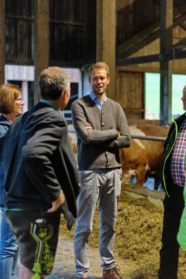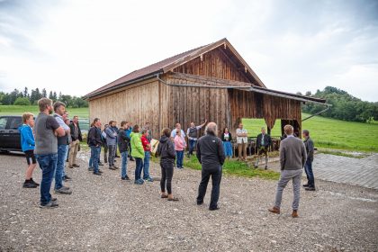 Daher lud der Arbeitskreis für Ernährung, Landwirtschaft und Forsten zur Besichtigung des Laufstalls im Milchviehbetrieb der Familie Raßhofer in Thankirchen bei Dietramszell ein. Der Laufstall ist ein gutes Beispiel dafür wie mit überschaubaren Mitteln ein herausragendes Ergebnis erzielt werden kann. Für den Bau des neuen Stalls war von der Familie ein enges Budget gesetzt worden. Der neue Laufstall für 60 Kühe wurde daher mit dem naturbelassenen Holz aus dem eigenen Wald und sehr viel Eigenleistung errichtet. Das Holz wurde im benachbarten Sägewerk geschnitten und vom Bauherren selbst mit einem Zimmerer abgebunden und verbaut. Ohne Folien und Bleche kamen Dachziegel als Dachhaut auf das Lattungsgerüst. Das Güllelager unter dem Stall bildet ein stabiles Fundament und spart zusätzliche Lagerstätten. Der Führung durch das Stallgebäude und das Melkhaus folgte ein angeregte Diskussion über das Gebäude, den Bauablauf und die Betriebsprozesse.
