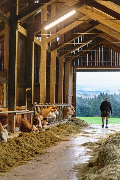 Im Landkreis Rosenheim werden auf ca. 2.100 Betrieben ca. 63.000 Kühe gehalten. Der Landkreis kann also durchaus als „Milchvieh-Region“ bezeichnet werden. Die Milchviehwirtschaft prägt die Kulturlandschaft in unserer Region in besonderem Maße. Das Wohl der Kühe steht für unsere Bauern an erster Stelle. Ein wichtiger Baustein hierbei ist die Errichtung von Laufställen, die den Tierkomfort erhöhen. Die Kühe können sich frei bewegen. Jede Kuh hat einen Liegeplatz, der von der Lauffläche getrennt ist. Für den Umbau oder Neubau von Laufställen werden im Argrarinvestitionsförderprogramm vom Staatsministerium Zuschüsse bereit gestellt. Trotzdem ist eine Investition in einen Stallumbau eine große finanzielle Herausforderung für viele Betriebe.