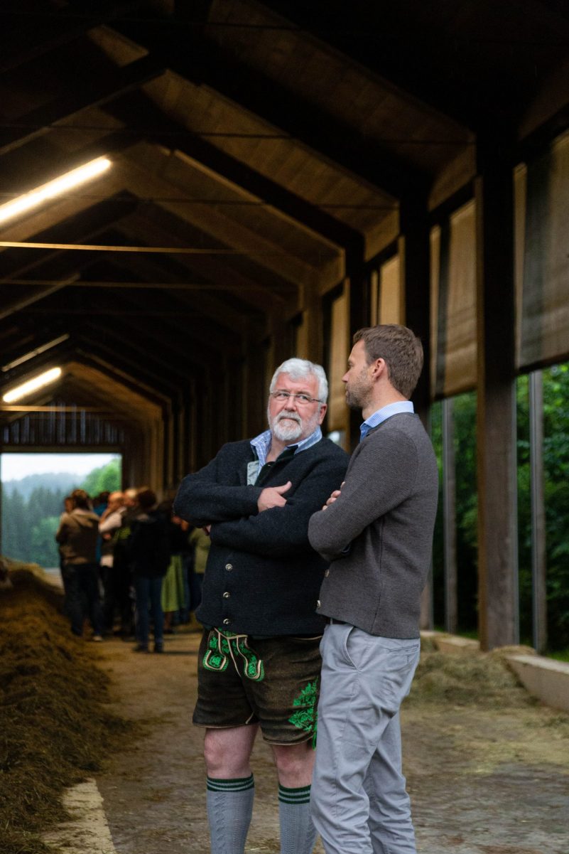 Der Stall der Familie Raßhofer ist somit nicht nur preiswert und gut für die Tiere, sondern auch ein baukulturelles Highlight. Die auffallend einfach Forme mit der eigens entworfenen Konstruktion in Tragwerk und Detail macht aus dem Nutzbau ein herausragendes Statement der regionalen Landwirtschaft. Der Stall wurde u.a. mit dem Deutschen Holzbaupreis ausgezeichnet. Der Entwurf stammt vom Bruder und Schwager des Ehepaars, Professor Florian Nagler, gelernter Zimmerer und Architekt.