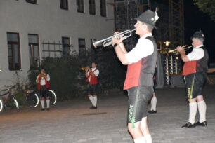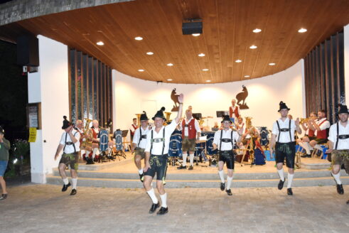 Keiner wollte nachhause gehen – auch nach den Zugaben nicht, so wurden von Gästen die Marketenderinnen Anna und Theresa beordert, eine Runde Schnaps für die Musiker zu bringen, damit sie das beliebte „Amazing Grace“ spielen. Die Bläser verteilten sich um den Platz und schickten die Melodie in den Nachthimmel und zauberten das Gänsehautfeeling bei den Gästen. Früher wurden dabei die Feuerzeuge gezückt, jetzt leuchteten die Handylampen und beendeten einen wunderschönen Sommerabend.  wun