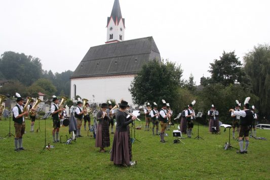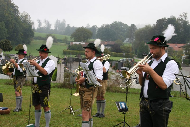 Im Anschluss an den Trachtenjahrtag in Altenbeuern absolvierte die Musikkapelle unter der Stabführung von Bernd Eutermoser am “Hierer-Biche” in Altenbeuern ein Standkonzert. Ein halbes Jahr ohne Probe und öffentlichen Auftritt liegen hinter uns, und wir freuen uns heute wieder für Euch spielen zu können, meinte der Dirigent bei der Begrüßung der Besucher. Alle Musikanten und die überschaubare Anzahl an Gästen konnten ausreichend Abstand halten. Eutermoser informierte über die Musikstücke, und die Zuhörer sparten nicht mit Beifall. Auch aus dem nahe gelegen Wirtsgarten beim Dorfwirt wurde Beifall gespendet.