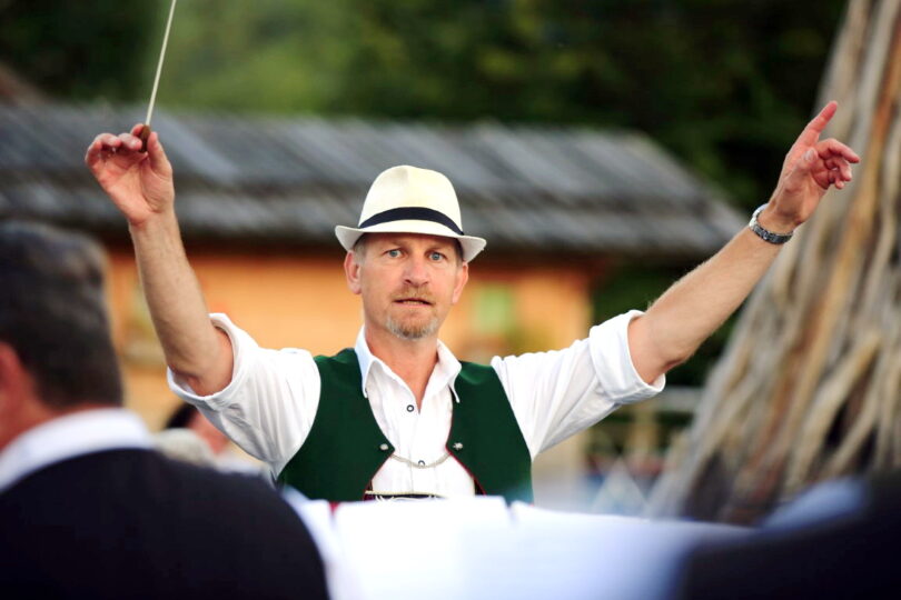 Vergangenen Dienstag war es dann soweit: Das letzte Standkonzert der Blaskapelle Übersee-Feldwies fand an der großen Hütte des Almhüttendorfes „Almdorado“ statt. Bei sommerlichen Temperaturen und Sonnenschein konnten wir das letzte Standkonzert der Saison und somit auch das von Dirigent Thomas Lindlacher abhalten. Musikalisch war für jeden etwas dabei – auf dem Programm standen Märsche, Polkas und auch flottere Stücke wie Paso Doble. Abgerundet wurde der Abend mit den Stücken „Badonviller Marsch“ und „Berliner Luft“.