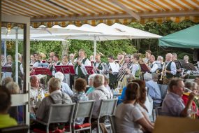 Es kann wieder losgehen! Nachdem seit Mitte Juni weitere Lockerungen für Blasmusik in Kraft sind, beginnt am 17. Juli die beliebte Standkonzertreihe “Klingendes Übersee”.