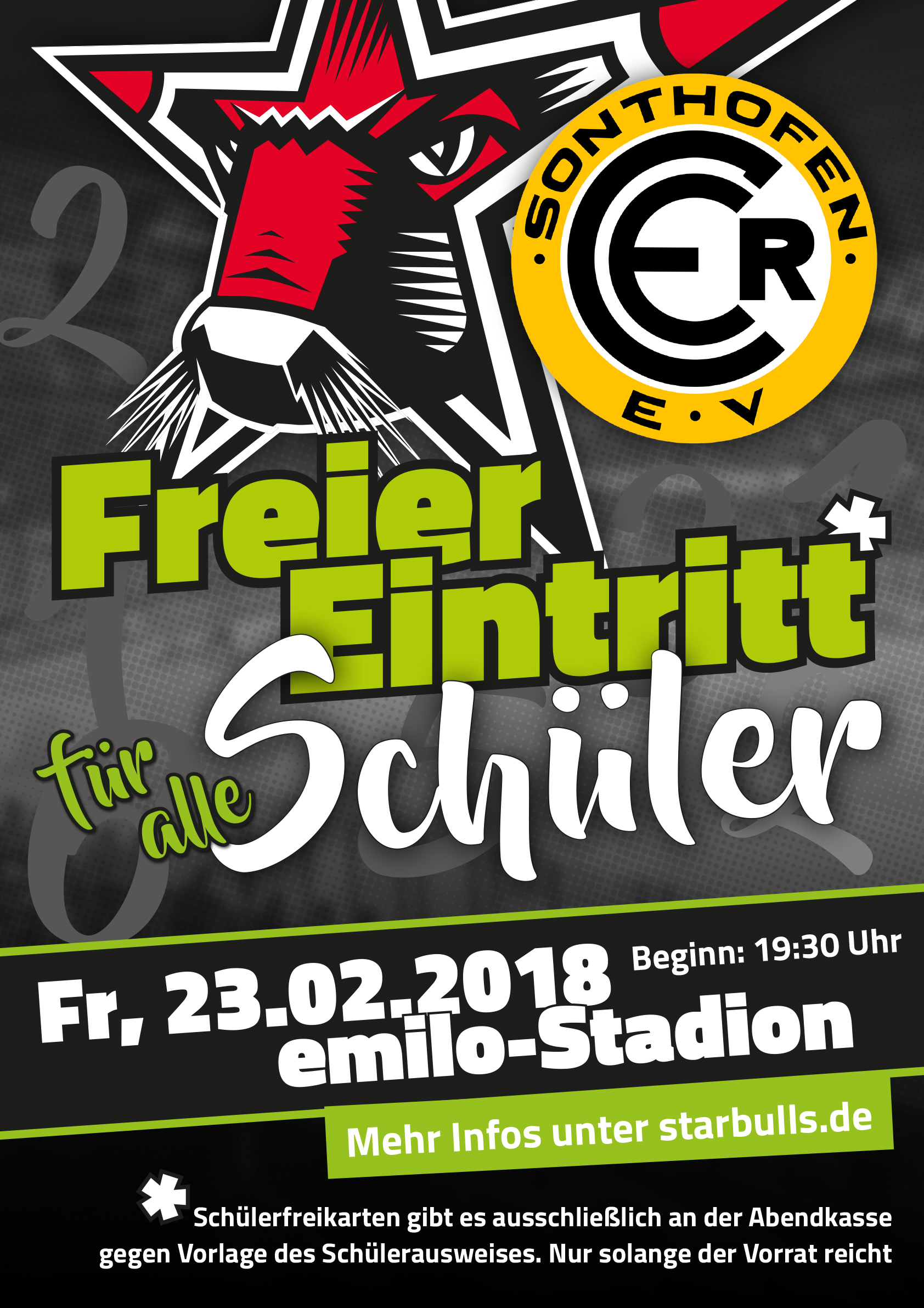 Am kommenden Freitag ist nicht nur das Heimspiel der Starbulls Rosenheim gegen den ERC Sonthofen. An diesem Tag werden an den Schulen in der Region auch die alljährlichen Zwischenzeugnisse vergeben. Anlässlich der Ausgabe der Halbjahreszeugnisse haben sich die Starbulls Rosenheim etwas einfallen lassen, um alle Fans und Interessierte im Schüleralter zu belohnen. Für das Heimspiel gegen den ERC Sonthofen erhalten alle Schüler gegen Vorlage des Schülerausweises freien Eintritt. Die Freikarten sind ausschließlich an der Abendkasse vor dem Heimspiel erhältlich. Diese öffnet zwei Stunden vor Spielbeginn. Tickets nur solange der Vorrat reicht.