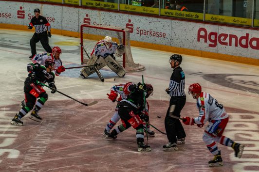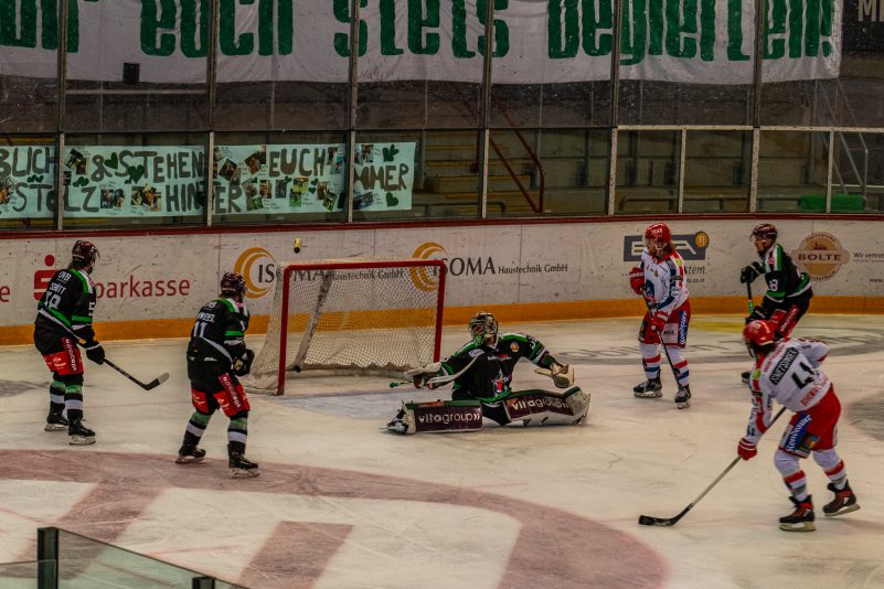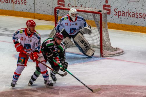 Im zweiten Spiel des Playoff-Halbfinales der Eishockey-Oberliga Süd reisten die Selber Wölfe nach Rosenheim und gewannen gegen die Starbulls vom Inn mit 5:2 – davon dieser aktuelle Bilderbogen.
