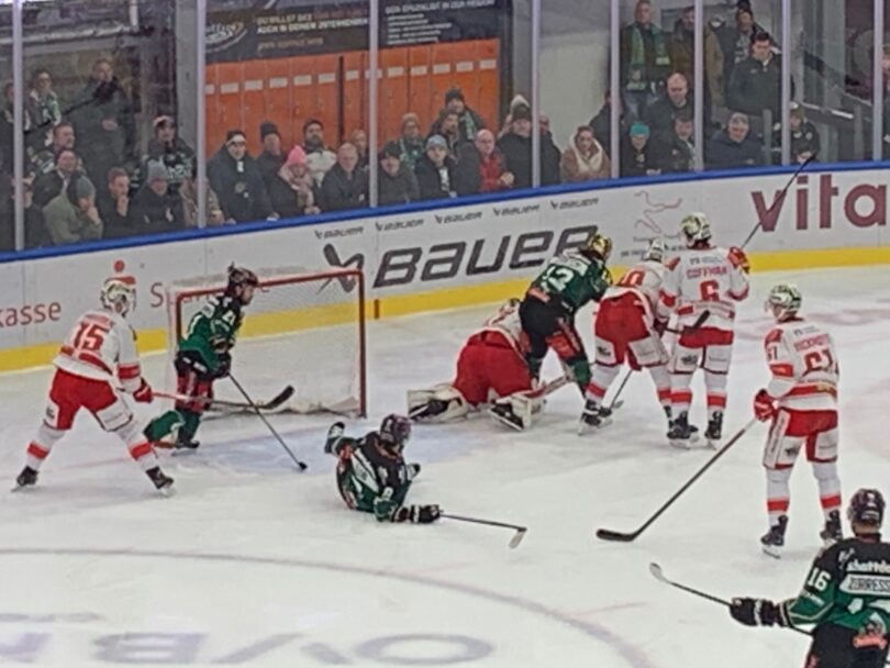 Pech hatten die Gäste, als Julian Lautenschlager den Puck per Direktabnahme an den Pfosten hämmerte (33.). Im Gegenzug scheiterte Dominik Kolb nach einem Solo frei an Nauheim-Keeper Lunemann. Eine Minute später war es Stretch, der mit einem Solo glänzte, dabei Lunemann aus seinem Tor lockte und von hinter der Grundlinie in den Torraum zurücklegte, wo sich Järveläinen gegen seinen Gegenspieler behauptete und nur noch ins leere Tor einschieben musste – 3:0 (35.). Überweite Strecken hatten die Starbulls auch im zweiten Drittel alles im Griff gehabt, ließen in der Defensive aber plötzlich die Zügel schleifen. Tim Coffmann und Parker Bowles durften an der Bande walten und Jordan Hickmott versenkte den Rückpass über den Innenpfosten im Netz – 3:1 (38.). Eine gute halbe Minute später schlug die Paradereihe der Roten Teufel erneut zu. Diesmal war es Coffmann, der den Puck per Rückhand über den selben Innenpfosten zum 3:2-Anschluss über die Linie drückte (39.).