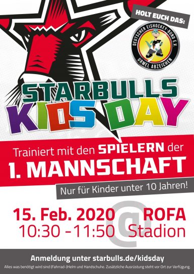 Hierzu findet am Samstag, den 15. Februar 2020 der zweite Starbulls KidsDay der laufenden Saison statt. Der Nachwuchs (ab 3 Jahren) hat die Möglichkeit seine ersten Schritte auf dem Eis mit Spielern der ersten Mannschaft machen und den Spaß am Eishockey kennenzulernen. Das Schnuppertraining beginnt um 10:30 Uhr und endet um 11:50 Uhr. Alles was benötigt wird sind (Fahrrad-)Helm und Handschuhe. Zusätzliche Ausrüstung steht vor Ort zur Verfügung.