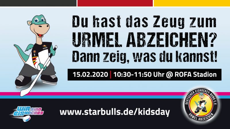 Am Samstag, den 15. Februar haben Kinder unter 10 Jahren ab 10:30 Uhr die Möglichkeit gemeinsam mit Spielern aus der ersten Mannschaft der Starbulls Rosenheim in das Rosenheimer Eishockey hinein zu schnuppern. Bis 11:50 Uhr besteht die Chance zum Mitmachen. Ein besonderes Highlight bietet die erstmalige Möglichkeit zur Abnahme des Urmel-Abzeichens.