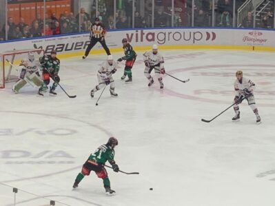 Der herausragende Gästetorwart verhinderte im ersten Spielabschnitt gegen C.J. Stretch, Travis Ewanyk und mehrfach gegen Ville Järveläinen den verdienten Rosenheimer Führungstreffer. Und die Starbulls sollten sich – egal ob aus der Distanz oder aus nächster Nähe – die gesamte Spielzeit die Zähne an Sharipov ausbeißen. Die Gäste, die in den letzten fünf Spielen alle möglichen 15 Punkte holten, waren vor allem bei schnellen Kontern gefährlich – und bei einem Überzahlspiel: Simon Sezemsky nagelte den Puck an die Latte (14.). rosenheiAuch im zweiten Drittel hatten die Starbulls zunächst ein leichtes Übergewicht an Torchancen und Spielanteilen. Das Überzahlspiel – erneut zweimal zwei Minuten – funktionierte allerdings nicht mehr so gut. In einer Unterzahlsituation hielten sich die Grün- Weißen mit leidenschaftlichem Kampf und einem gut aufgelegten Torwart schadlos. Und wie schon im ersten Drittel reagierte Oskar Autio auch bei einem Alleingang von Nijenhuis prächtig (33.).