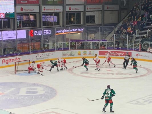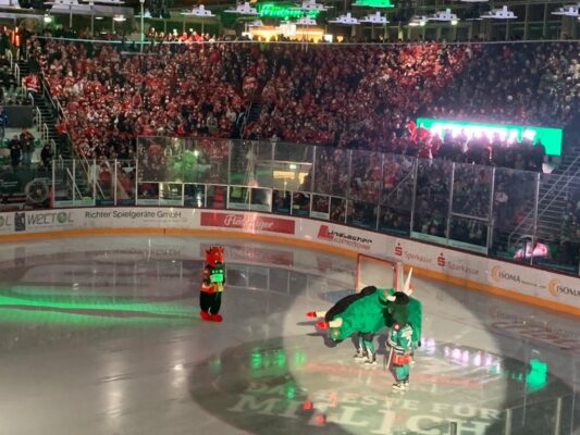 Von diesem Sieg und Erlebnisabend im Rosenheimer Eisstadion dieser kleine Bilderbogen.