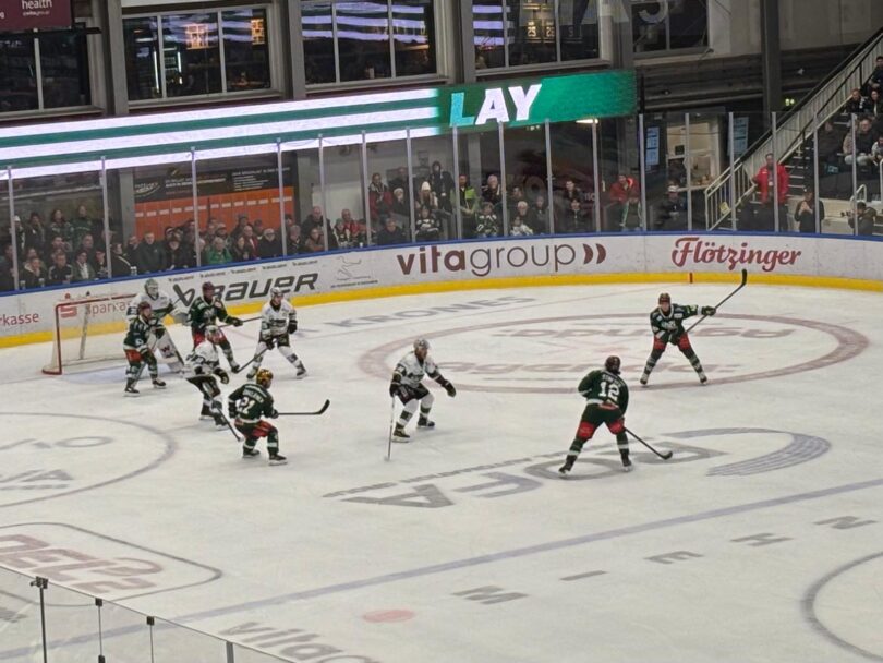 Die Hausherren kamen in den Genuss von vier sich kurzzeitig überlappenden Überzahlminuten – und dabei zappelte der Puck auch einmal im Netz der Gäste. Dem vermeintlichen Treffer von Scott Feser verweigerten die Unparteiischen jedoch zurecht die Anerkennung, weil Fabian Dietz Gästekeeper Olafr Schmidt regelwidrig behindert hatte (14.). Trotz Chancenplus für die Grün-Weißen ging es torlos in die erste Pause.