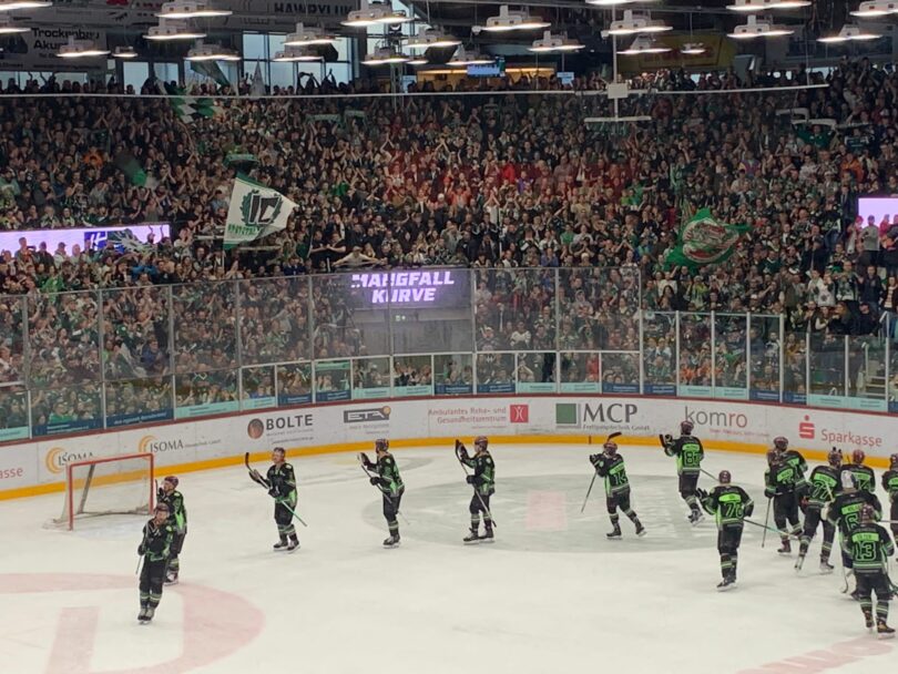 Bei den Starbulls Rosenheim war Topscorer Reid Duke nach abgegoltener Fünf-Spieler-Sperre wieder mit dabei, für ihn musste Tyler McNeely weichen. Allerdings war die Partie für Dukes Sturmpartner Chris Dodero, der einen Schuss auf die Hand bekam, bereits nach fünf Minuten und zwei Wechseln beendet. Trotzdem konnten die Grün-Weißen mit vier Sturmreihen weiterspielen, zunächst Dominik Kolb und später Marius Möchel rückten in die vierte Offensivlinie.