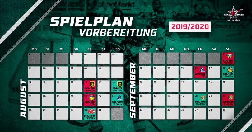 In den vergangenen Wochen konnten die Starbulls Rosenheim das Vorbereitungsprogramm für die neue Oberliga-Saison 2019/2020 fixieren: Dabei treffen die Grün-Weißen in insgesamt 10 Partien auf durchwegs attraktive Gegner aus Deutschland, Österreich und Italien.