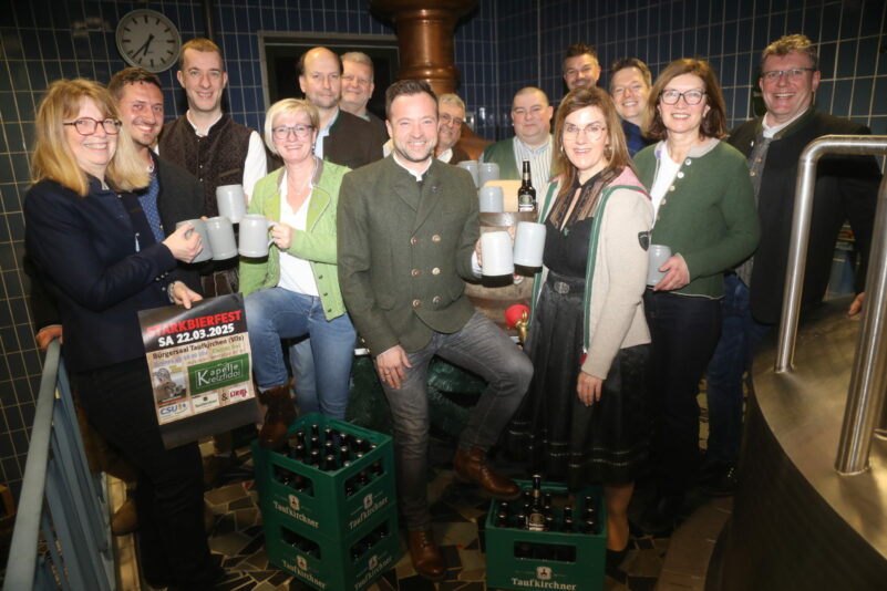 Am Samstag, 22. März, um 18 Uhr heißt es nach einer längeren Pause wieder “Auf geht’s zum Nockherberg in der Vilsgemeinde Taufkirchen”. Bei der traditionellen Bierprobe stimmten sich im Taufkirchener Sudhaus am Freitagabend 28. Februar schon mal zwei Dutzend Festverantwortliche der Guts- und Brauereigenossenschaft Taufkirchen, die Organisatoren und Vorstandschaft des CSU-Ortsverbandes Taufkirchen mit Bürgermeister Stefan Haberl, Abordnung der CSU-Frauen-Union Taufkirchen mit ihrer Ortsvorsitzenden Karin Huber und Volksfestreferent Thomas Unterreitmaier und weitere Biertester auf das bevorstehende Starkbierfest ein.