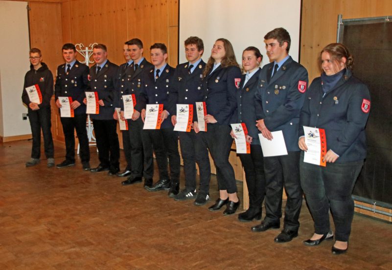 Von zahlreichen Aktivitäten im vergangenen Jahr berichtete auch Jugendwart Stefan Huber. Die Jugendfeuerwehr mit ihren 12 Jungen und zwei Mädchen war eingebunden in die Christbaum-Einsammelaktion, den Informationstag der Feuerwehr, den Berufsfeuerwehrtag in Aschau, ein Zeltlager am Gerätehaus, mehreren Fortbildungen und zwei Gemeinschaftsübungen mit der Rottauer und Aschauer Jugendwehr. Fast alle Jugendlichen hatten sich auch erfolgreich einem Wissenstest unterzogen, der einer Leistungsprüfung gleichkommt. Innerhalb der Jugendfeuerwehr kamen so mit Vor- und Nachbereitung über 2150 Stunden zusammen. Huber bedankte sich bei seinem Stellvertreter Matthias Stephan, bei allen Spendern und den vielen Helfern.