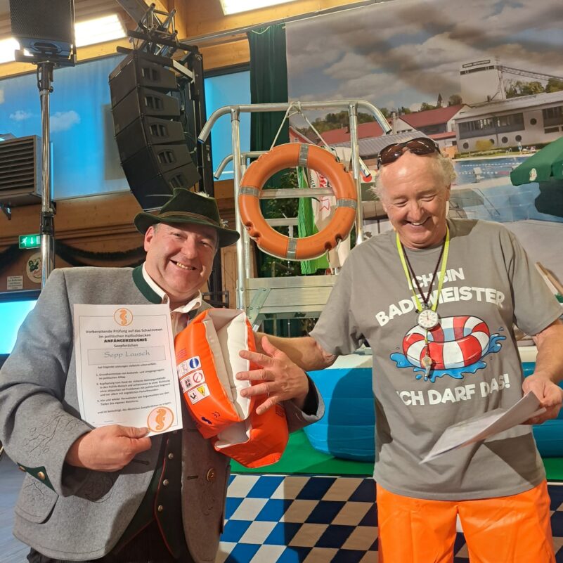 Neben den kulinarischen und blasmusikalischen Genüssen fand wie schon seit vielen Jahren die Fastenpredigt von Peter Kirmair das Hauptinteresse. Dessen Einblicke in eine Schwimmschule und die Einfahrt mit einem Traktor waren Teil des Spiegels, der den Ehrengästen und vor allem auch den Politikern vorgehalten wurde.