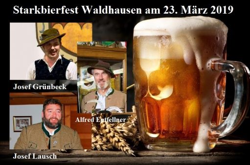 Zum Starkbierfest mit „Witz vazoin“, Gstanzln und Couplets lädt der Trachtenverein Waldhausen in der Gemeinde Schnaitsee am Samstag, 23. März 2019 in die Turnhalle in Waldhausen. Beginn mit dem Bieranstich durch Bürgermeister Thomas Schmidinger ist um 19:30 Uhr (Einlass: 18:00 Uhr). Ein abwechslungsreiches Programm und die frisch gebrauten Biere sorgen dafür, dass Akteure sowie Besucher lustige und unbeschwerte Stunden erleben werden. Neben den drei Hochzeitsladern Sepp Lausch aus Petzenbichl bei Tattenhausen, Alfred Entfellner aus Halfing und Sepp Grünbeck (Kupferschmied Sepp) aus Dietfurt bei Ingolstadt, die Anekdoten und Witze erzählen, präsentieren „De junga Oidboarisch’n“ mit Posaune und Diatonischer altbairische und kernige Wirtshausmusik. De junga Oidboarisch’n mit Georg Krammer und Christian Dauber, zwei waschechte Wirtshausmusikanten aus Pöttmes und Aindling im Landkreis Aichach-Friedberg die durch ganz Bayern ziehen und über dessen Grenzen hinaus, sind mittlerweile mit ihren Couplets und Gstanzln auch bekannt durch die Sendung „Brettl-Spitzen“ im BR Fernsehen. Natürlich ist auch das Publikum zum Mitmachen eingeladen und soll und darf den einen oder andern Witz oder auch ein Gstanzl beitragen. Die passende Musik zu diesem Lachmuskel-Marathon gibt es von der Barfußmusi aus St. Leonhard/Schnaitsee. Natürlich ist auch für das leibliche Wohl gesorgt.