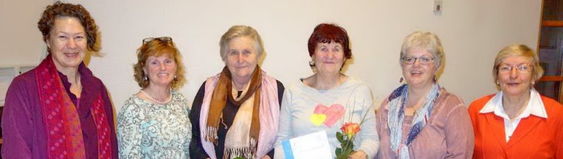 - Ehrung beim Frauenbund Bernau-Hittenkirchen von links: Pastoralreferentin Edith Heindl, Erste Vorsitzende Christa Weingartner, Hilde Wiesbeck, Monika Lackerschmid, Schriftführerin Gerlinde Hartl und Bezirksleiterin Christine Penners (es fehlt auf dem Bild Liesl Schumacher, die ebenfalls für 25 Jahre geehrt wurde).