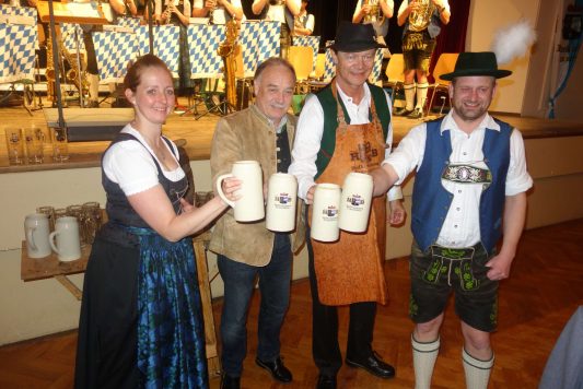 „Familie, Ehre, Treue, Vaterland – das waren die Tugenden vor 100 Jahren, heute pflegen wir Wohlstand, Freiheit, Unabhängigkeit sowie Kommunikation und Datenschutz“ – mit diesem Vergleich begann Johannes Dreikorn seine Ansprache an alle Priener, gleich ob Ehrenbürger, Bürgerbegehrenschreiber oder Steuerflüchtige. Beim Datenschutz ging er zuerst auf den griechischen Philosophen Sokrates ein als er diesen mit den Worten zitierte: „Wenn Du etwas weitersagen willst, dann siebe es erst dreimal durch das Wahre, das Gute und das Notwendige“. In die Gegenwart und in den König-Ludwig-Saal blickend sagte er darauf: „Wer schon einmal bei Rosi Hell in der Whats-App-Gruppe war, der weiß, was Datenschutz ist“ – und er ließ daraufhin die Krüge hochheben zum Zeichen dafür, dass alle Besucher mit der Erhebung ihrer Daten einverstanden sind. Natürlich kam die Gemeindepolitik nicht zu kurz. Bürgermeister Jürgen Seifert, dessen Ein-Mann-Show in der Bürgerversammlung entweder zum Heimgang oder zum Wachkoma veranlasste, forderte er auf, das Bauvorhaben Eglwieser nicht so lange auf sich warten zu lassen wie den Berliner Flughafen oder den englischen Brexit. „Ein Haus für die Musik in Prien, wieso haben wir das noch nicht angesichts der räumlichen Engpässe in der Musikschule und bei der Blaskapelle?“ – diese Frage verband Bruder Johannes gleich mit dem Vorschlag, das ehemalige Chiemsee-Center dafür zu nutzen. Die Erwartungen sollten aber nicht zu hoch geschraubt werden, denn für das Haus der Musik gab es den gleichen vom gesamten Publikum angestimmten Refrain „Des war immer schon so, des muss so sein“ (frei nach dem Priener Gemeinderat Peter Fischer) wie für das Priener Verkehrs- und Radwege-Konzept, für den zweiten Bahnhofs-Aufzug und für den Bahnhofs-Vorplatz. Die Verhandlungen mit der Bahn waren ein weiteres Thema, denn Bürgermeister Jürgen Seifert war deswegen schon einmal umsonst („Nicht gratis, sondern vergeblich!“) von Prien nach Berlin gereist. Obwohl es im König-Ludwig-Saal den Besuchern ob der guten Bewirtung der Gastronomie-Familie Heinrichsberger gut ging, hatte der Fastenprediger auch hier ein Haar in seiner Fastensuppe gefunden und er sagte: „Prien gibt es seit 860 Jahren, den Kursaal seit 55 Jahren und seit 20 Jahren hat diesen die Gemeinde Prien, doch das Konzept der Erneuerung von Lampen und Waschbecken ist von vorvorgestern, da wäre es gescheiter in ein langfristiges Festzelt mit Wiesenbesitzer Peter Thaurer zu investieren, dann hätte die Priener Jungbauernschaft im nächsten Jahr auch gleich eine Bleibe bei ihrem Jubiläum“. Noch viele weitere Priener Themen, viele aufgrund von anonymen und zugleich doch bekannten Informanten zeigte Bruder Johannes auf, dazu gehörten die „Texas- und Nevada-Kreisel“ beim Moar z´Bruck und bei der Bahnunterführung („Plant Prien eine weitere Partnerschaft mit Texas?“), das Ziel „Lebenswerteste Seegemeinde im Alpenraum zu werden“ („Was mit der schönsten Geröllhalde im Alpenraum erreicht werden könnte!“) sowie das Baumsterben, das sich von Priener Straßen bis nach Aschau fortentwickelt hat. „Kein Baumsterben, vielmehr das Gegenteil, einen erstmaligen April-Baum in Bernau, das ist deutschlandweit einmalig“ – nach diesem Seitenhieb auf die Nachbargemeinde widmete sich Johannes Dreikorn wieder der Priener Kommunalpolitik. „Für die Bürgermeisterwahlen bieten sich –was man so hört- neben Jürgen Seifert auch noch Michi Anner junior, Klaus Löhmann und Klaus Stöttner an, doch das ist noch nicht amtlich. Amtlich ist hingegen, dass die Bernauer Straße für die kommenden Festzüge risikoärmer wird und dass in der Kampenwandstraße mehr Advokaten als Arbeiter zu tun haben“. Im Beisein der Vertreter aller Priener Kirchengemeinden bat Bruder Johannes die Kirche weiter im Dorf, die Pfarrer bei den Schäflein und die Wirtshäuser bei den Kirchen zu halten. Lobend erwähnte er die Neuwahl des jungen Priener Feuerwehrkameraden Samuel Witt zum neuen Kommandanten und Nachfolger von Stefan Pfliegl, kritisch bezeichnete er hingegen, dass die in ganz Bayern gültige Ehrenamtskarte überall, bloß nicht im Prienavera gilt. Anekdoten von Ausflügen der Priener Blaskapelle, unter anderem nach Hasselbach in Hessen, als mangels Schlüssel der Brauch des „Fensterln“ geübt werden musste und zur Grünen Woche nach Berlin, als Vorstand Stefan Hackberg samt Instrumentenraum-Schlüssel verschlief, rundeten die viel beklatschte Predigt ab. Das Starkbierfest selbst wurde noch bereichert durch Blasmusik von der Jugendblaskapelle unter der Leitung von Regina Stephan (in Vertretung von Josef Steiner) und von der Blaskapelle selbst mit Dirigentin Regina Huber (für den erkrankten Stefan Fußeder). Zum kulinarischen Wohl gehörte unter anderem das Fastenbier vom Hofbräuhaus Traunstein, dessen erstes Faß Bürgermesiter Jürgen Seifert mit einem vorsichtigen und drei kräftigen Schlägen bei minimalem Gerstensaft-Verlust im Beisein von Brauerei-Vertreter Richard Hundhammer anzapfte (Über Ehrungen durch Bezirksvorsitzenden Leonhard Eisner und über die Vorstellung der Festschriften und Festzeichen für die Priener Festwochen berichten wir noch gesondert).