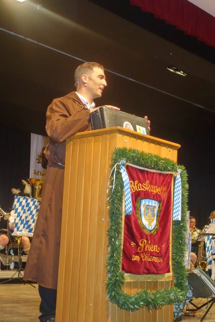 Ganz im Zeichen der heurigen Priener Jubiläumsfestwochen von Feuerwehr und Blaskapelle Prien, die vom 23. Mai bis 3. Juni im Festzelt an der Bernauer Straße gefeiert werden, stand das traditionelle Starkbierfest der Priener Musikanten im voll besetzten König-Ludwig-Saal. Um dieses besondere Fest zu einem Erfolg werden zu lassen, bat Bruder Johannes (Dreikorn) in seiner fast einstündigen Fastenpredigt als Schluss-Tipp die Priener um ein starkes WIR-Gefühl.