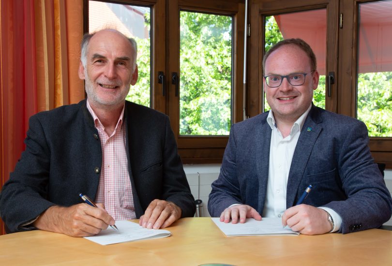 - Unterzeichnung der Absichtserklärung im Priener Rathaus. Von links nach rechts: Norbert Kreier, Regionalmanager Deutsche Telekom und Andreas Friedrich, Erster Bürgermeister Markt Prien a. Chiemsee. Bildrechte: Anita Berger, Prien a. Chiemsee.