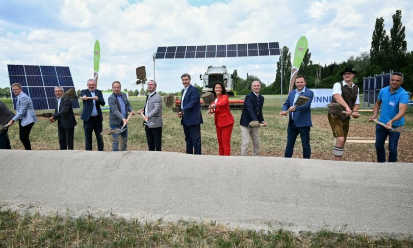 Am Standort Grub entstehen drei verschiedene Modultypen: eine der Sonne nachgeführte, eine hochaufgeständerte und eine vertikale Anlage. Auf den Flächen finden zudem Untersuchungen zur Ökonomie und Ökologie statt. Im wissenschaftlichen Fokus stehen auch mögliche Wechselwirkungen zwischen der landwirtschaftlich bewirtschafteten Fläche und den PV-Anlagen, die ein Projekt im Rahmen des Bayerischen Klimaschutzprogramms sind. Die PV-Module beanspruchen nur 15 Prozent der Fläche, 85 Prozent stehen weiterhin der landwirtschaftlichen Produktion zur Verfügung. Die Gesamtanlage soll eine Leistung von 900 Kilowatt haben und voraussichtlich 2024 ans Netz gehen. Landwirtschaftsministerin Kaniber: „Alles in allem ist das ein in Deutschland einmaliges Projekt. Hier können unsere Landwirtinnen und Landwirte verschiedene Konzepte vor Ort anschauen und sich darüber informieren, welche praktischen Auswirkungen eine solche Anlage auf ihre landwirtschaftliche Erzeugung hat. Das finde ich großartig, denn wir wollen unsren Nahrungsmittelproduzenten solides Wissen mit an die Hand geben, damit sie sich bestmöglich für die Zukunft aufstellen können.“