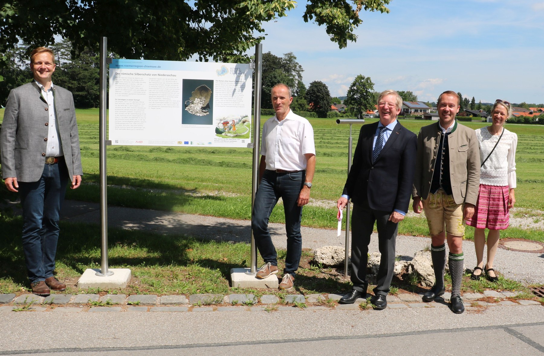Bürgermeister Simon Frank, Thomas Kamm (Bürgermeister der Gemeinde Siegsdorf, Erster Vorsitzender der LEADER LAG Chiemgauer Alpen), Sebastian Wittmoser (LEADER-Koordinator Oberbayern-Süd, Amt für Ernährung, Landwirtschaft und Forsten), Herbert Reiter (Leiter der Tourist Information Aschau) Corinna Spieth-Hölzl (Kulturreferentin Aschau),