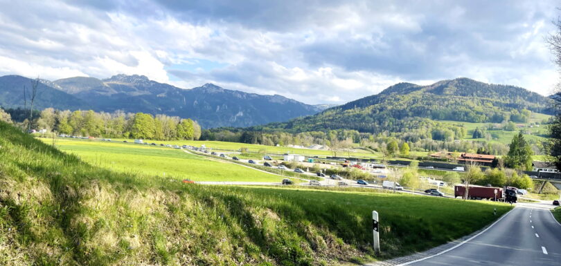 Immer wieder kommt es vor, dass es auf der Autobahn zwischen Salzburg und München zu Staus kommt. Dann ergeben sich – wie in diesen Osterferientagen – in idyllischer Landschaft Bilder mit einer Autoschlange bei der Ausfahrt in Frasdorf.
