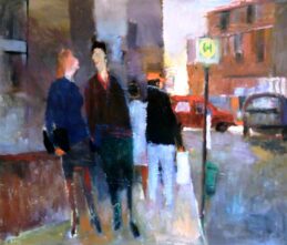 Besonders eindrucksvoll sind auch die lediglich skizzierten Menschengestalten bei Ernst Haas. Durch die starke Abstraktion stellen sie keine Individuen dar, aber dennoch ganz deutlich bestimmte Typen. Die Bilder erscheinen stimmig und harmonisch in ihrem Gesamteindruck, denn der Bildaufbau ist immer konsequent horizontal oder vertikal durchgearbeitet.