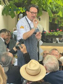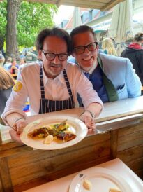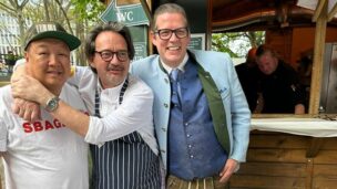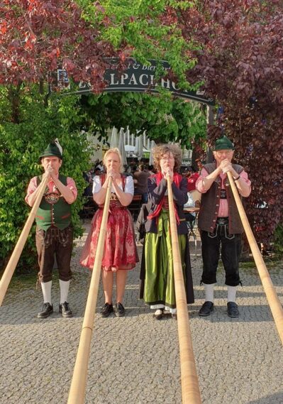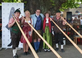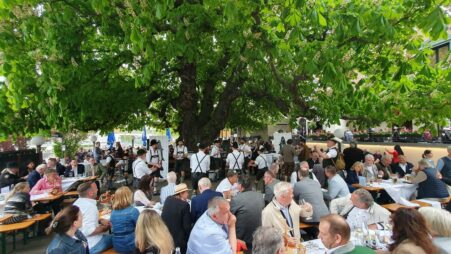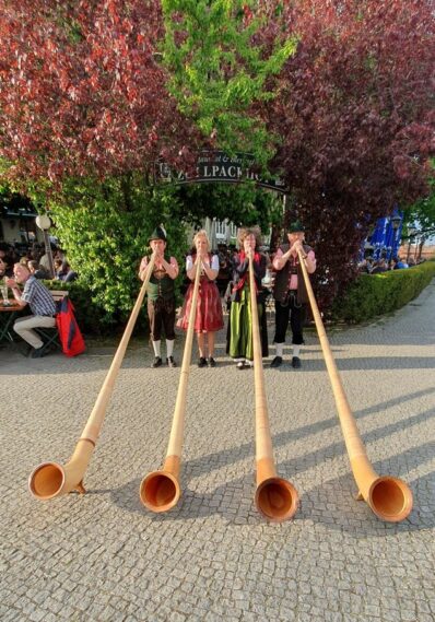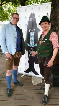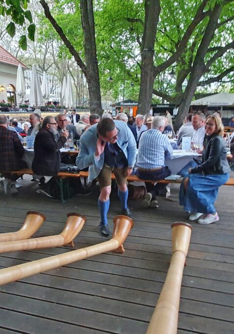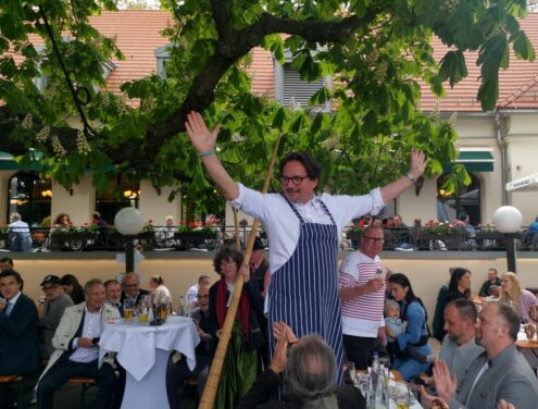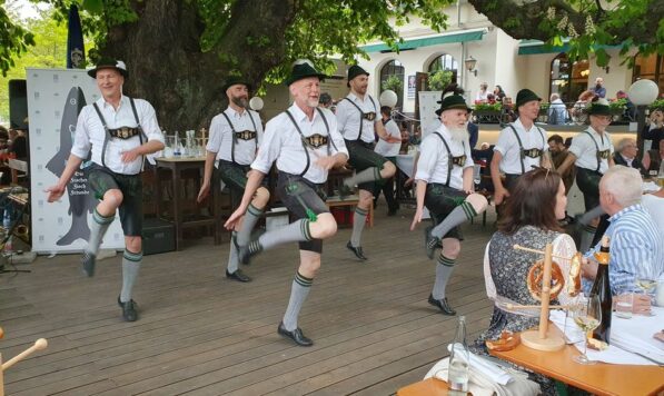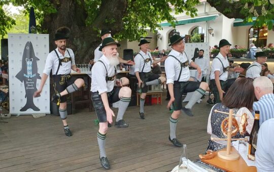 Bevor es frisch gezapftes Augustiner Helles vom Holzfass gab und die würzige Makrele auf den Tisch kam, ließen die FeschenFischFreunde den Spitzenkoch Kolja Kleeberg hochleben, der am selben Tag seinen Geburtstag feierte. Mit stimmungsvoller Blasmusik wurde der Abend von den „SpreeBlech“-Musikanten, einer Gruppe spielfreudiger Blechbläser aus der Spreemetropole, musikalisch umrahmt. Highlight des Abends waren jedoch die Schuhplattler-Einlagen der Berliner Querplattler. Die Gäste waren begeistert von dem Berliner Steckerlfischfest, unter der prächtigen uralten Kastanie, bei angenehmen Frühlingswetter. Geschäftsführer Benjamin Groenewold, im zünftigen Bayern-Outfit, zeigte sich äußerst zufrieden. Im nächsten Jahr heißt es dann sicherlich wieder „Es ist wieder soweit, frisch gegrillter Steckerlfisch, typisch bayrisch, traditionell im Biergarten des Zollpackhofs“.