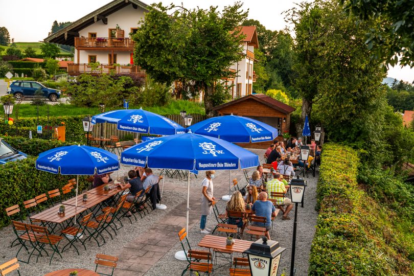 Foto: Rainer Nitzsche – Biergarten- und Abend-Stimmung beim Schinkensepp am Samerberg