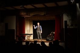 Goethe und Schiller auf bayerisch, eine echte Tiroler Perchtenmaske, das Leiden eines richtigen 60-er Fans musikalisch intoniert und noch Vieles mehr an charmantem, witzigem und intelligentem Kabarett aus dem Bereich bayerischer Sagen und Mythen bot Stefan Kröll gestern Abend dem begeisterten Publikum im ausverkauften Hamperwirt am Samerberg mit seinem aktuellen Kabarettprogramm GRUAM – Bayern von unten! Der gelernte Schreiner, der seine zweite Berufswahl – die des Kabarettisten – ganz pragmatische damit erklärt, dass der Vorteil beim Kabarett darin liege, dass die Gäste bei Reklamation kein Geld zurückhalten könnten, da alles auf Vorkasse laufe, ist ein erstklassiger Erzähler in Sachen bayerische Geschichte. Und so hing ihm das Publikum schnell an den Lippen, als er in seiner charmant-witzigen Art über Geheimnisse, Mythen und Aberglauben im Freistaat redete, dann aber geschickt immer wieder den Bezug zum „Hier und Jetzt“ herstellte und damit für beste Stimmung sorgte. Das begeisterte Publikum dankte es ihm mit einem nicht enden wollenden Applaus und erklatschte sich zwei Zugaben: Stefan Kröll hat sich mittlerweile eine feste Stellung in der bayerischen Kabarett-Szene erarbeitet und einen entsprechenden großen Fankreis. Wie der Veranstalter, die Eventagentur KULTOUREN mitteilte, laufen bereits die Verhandlungen für einen weiteren Auftritt im nächsten Jahr, in dem Stefan Kröll im Frühjahr ein neues Programm herausbringen wird.