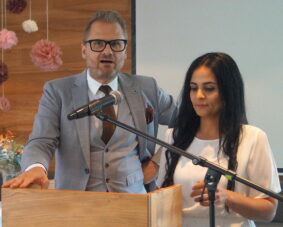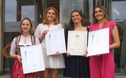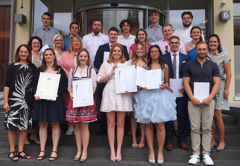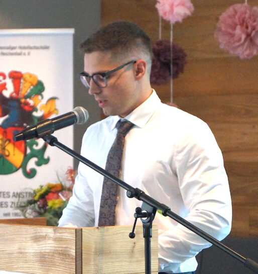 Mag. Caroline Schöndorfer übergab den staatlich geprüften Hotelbetriebswirten ihre Zeugnisse. Diesen zweijährigen Lehrgang absolvierten Schülerinnen und Schüler, die zuvor den Gesellenbrief in der Hotel- oder Tourismusbranche erlangt und 12 Monate einschlägige Berufserfahrung hatten. Die Lehrkraft blickte zurück und warnte vor der ungeprüften Übernahme von Texten der künstlichen Intelligenz Chat GPT. Besonders stellte sie das familiäre Verhältnis zwischen Lehrern und Schülern in der Steigenberger Akademie heraus. Sie sei stolz auf jeden und jede. „Ihr seid der Grund, warum ich meinen Job so gern mache“, sagte sie und schmunzelte weiter: „Natürlich auch die Kollegen“. Sie wünschte allen den Mut, die richtigen Entscheidungen zu treffen und die gesteckten Ziele zu überdenken, wenn nötig, vor allem aber privates Glück, beruflichen Erfolg und Gesundheit, sowie Neugier auf das Leben.