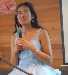1063: Roman Zeller ….. 1067: ….. und Lisa Reinartz danken im Namen der Schülerinnen und Schüler und blicken humorvoll zurück.